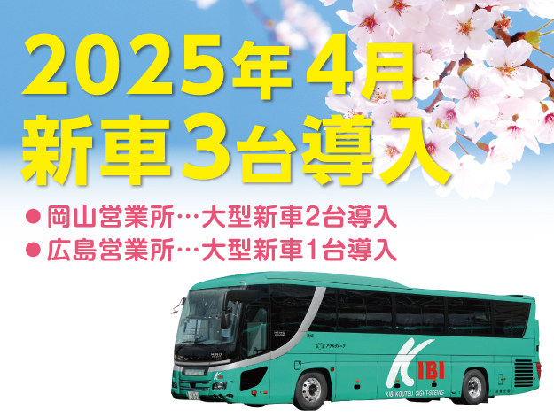 2025年4月大型新車3台導入。・岡山営業所…2台・広島営業所…1台